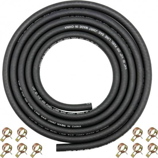 1/4" ID Fuel Hose Line Braided NBR Rubber Tubing 8 Feet For Automotives Generator Lawn Mower With 10 Clamps (6.4Mm ID)