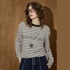 Coolhut2025 Autum Women's Round Neck Stripesd Contrasting Color Loose and Versatile Simple Long-Sleeved T-Shirt