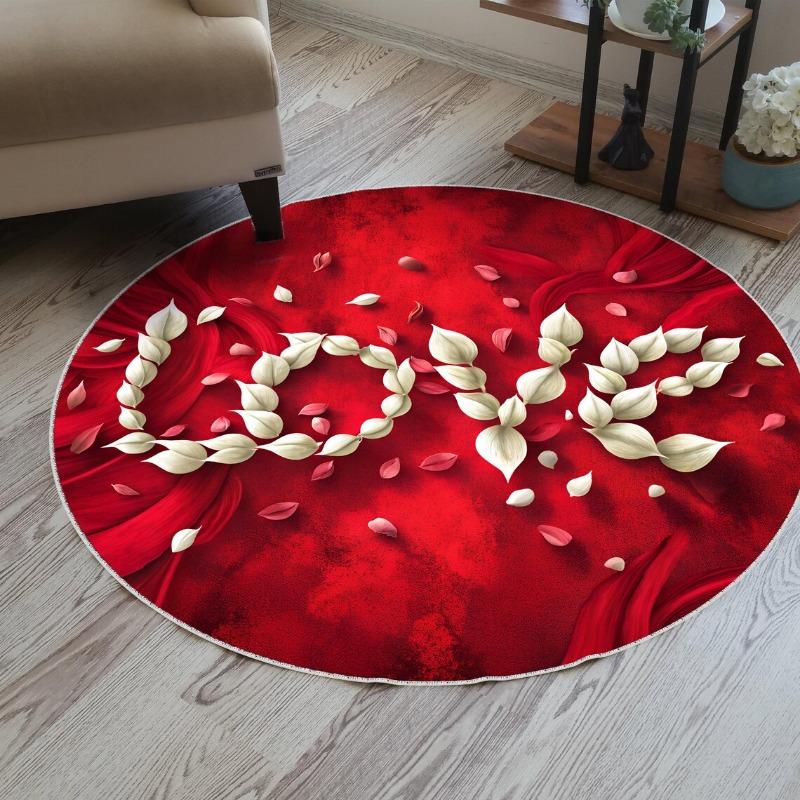 Walentynki Dywan Okrągły z Płatków Róż Wizualny Stereoskopowy Wzór Róż Miłości Dywan do Salonu Sypialni