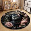 Okrągły Dywan Wzór Czarnego Kota Róże Pnącza Ozdobny Wzór Mata Podłogowa Luksusowy Vintage Wystrój Domu Dywan do Salonu Sypialni