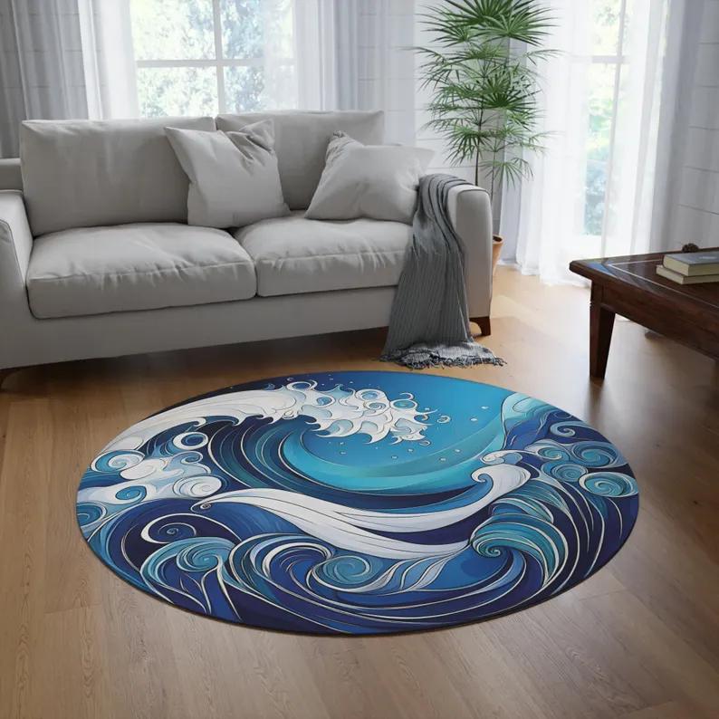 Ocean Wave Round Rug Starfish Beach Carpet Coastal Nautical Round Floor Rug Sea Shell Marine Decor Visual 3D Ocean Wave Decor