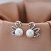 Klasyczne kolczyki Łabędź Srebrna igła, Letnie mini kolczyki sztyfty z pereł Kolczyki wiszące Dongdaemun damskie