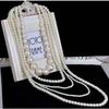 French design sense three-layer glass pearl long necklace sweater chain with small fragrant style retro gentle long necklace