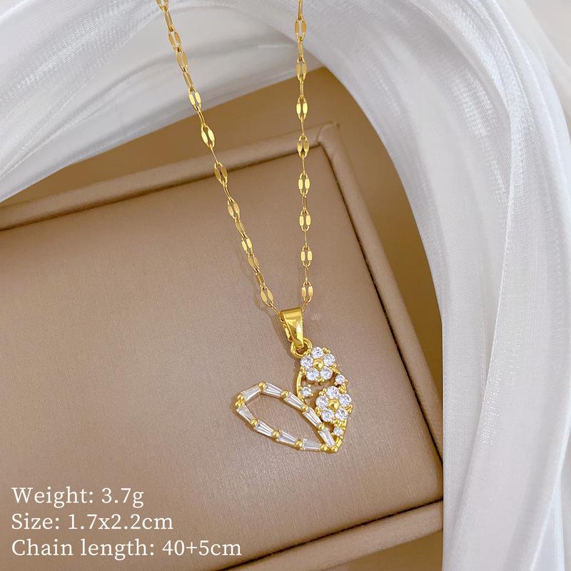 Empty Love Fashion Light Luxury Temperament Gorgeous Full Diamond Necklace Female Versatile Collarbone Chain Titanium Steel Chain