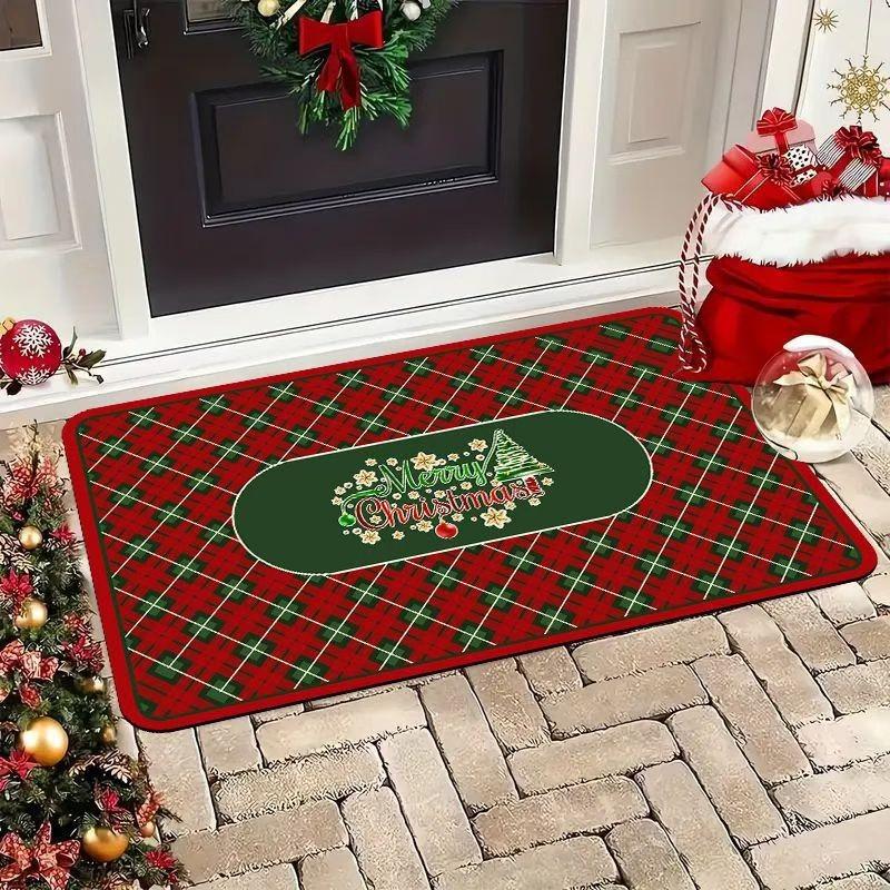 Christmas Checkered Pattern Carpet Mat Holiday Party Anti Slip Carpet Home Decoration Living Room Merry Christmas Train Foot Mat