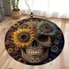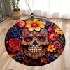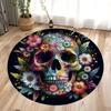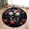 Halloween Terrifying Rose Skull Round Carpet Gothic Rose Carpet Bedroom Living Room Decoration Halloween Gift