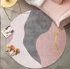 Okrągły dywanik z nowoczesnymi geometrycznymi wzorami, abstrakcyjnymi kształtami, minimalistyczny styl skandynawski, miękki, trwały, dekoracja podłogi do salonu