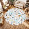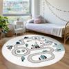 Round Kids Carpet With Cartoon Map Road Track Hot Air Balloon Airplane Car Other Patterns NonSlip Mat For Kids’ Room Home Decor