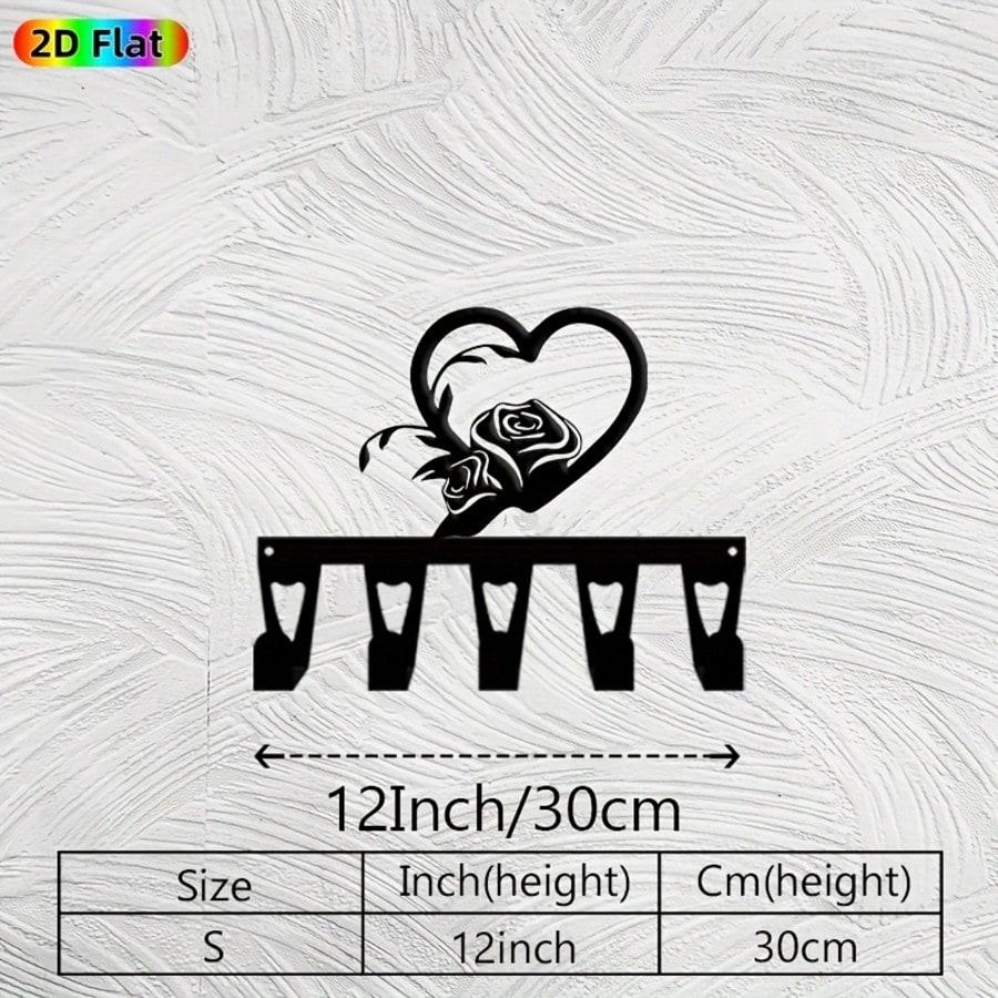 Abstrakcyjny Różowy Klucznik w Kształcie Serca Metalowa Sztuka Ścienna 5 Haczyków Oszczędność Miejsca Dekoracja Świąteczna Prezent