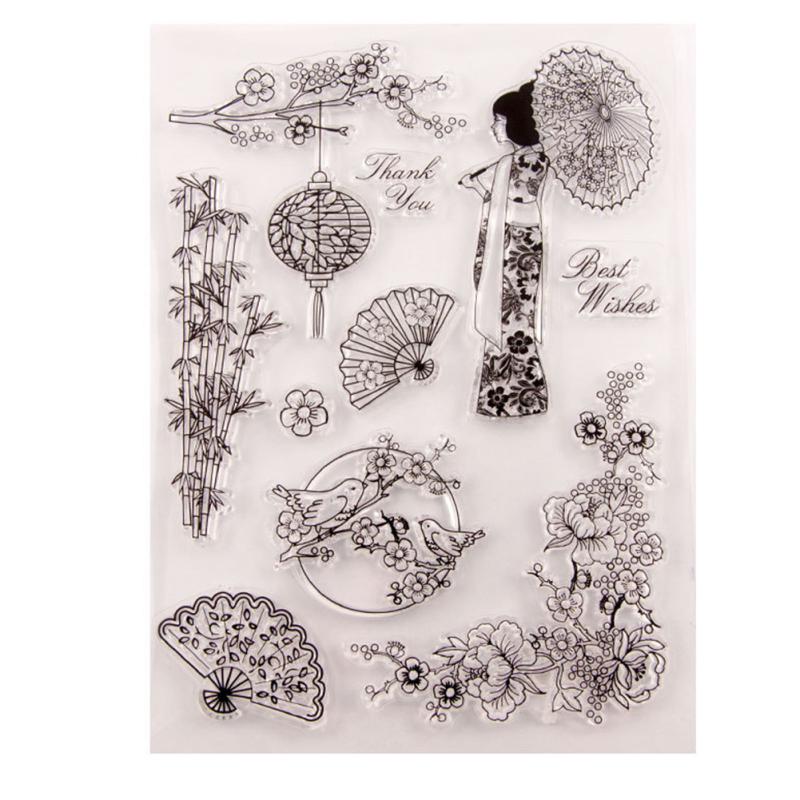 Kimono z kwitnącą wiśnią Przezroczysty silikonowy stempel do pieczątki DIY Scrapbooking Album na zdjęcia Dekoracyjny