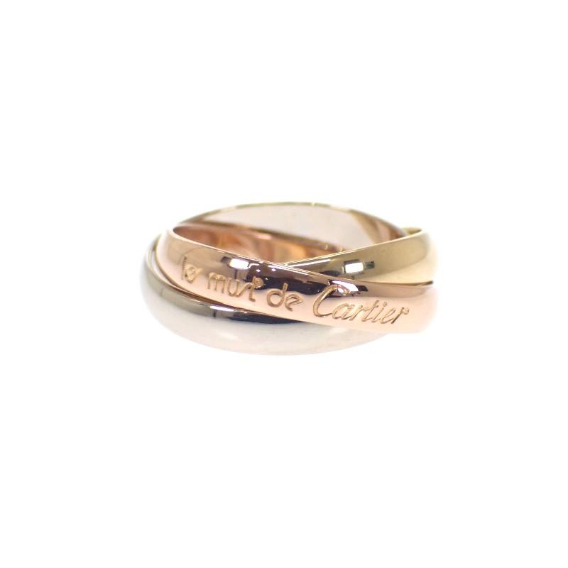 Cechy produkcyjne:To jest pierścionek Cartier "Trinity", damska biżuteria. Ten element jest częścią popularnej serii Cartier "Trinity", która charakteryzuje się trzema splecionymi pierścieniami z 18-karatowego złota.. Grube, zachodzące na siebie pasy tworzą odważny, ale elegancki wygląd.. Ten ponadczasowy pierścionek, odpowiedni dla osób w każdym wieku, jest doskonałym prezentem na urodziny, rocznice lub jakąkolwiek okazję.