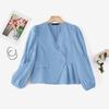 ZANZEA Kobiety Casualowy Dekolt V Luźny Długi Rękaw Jednolita Bluzka