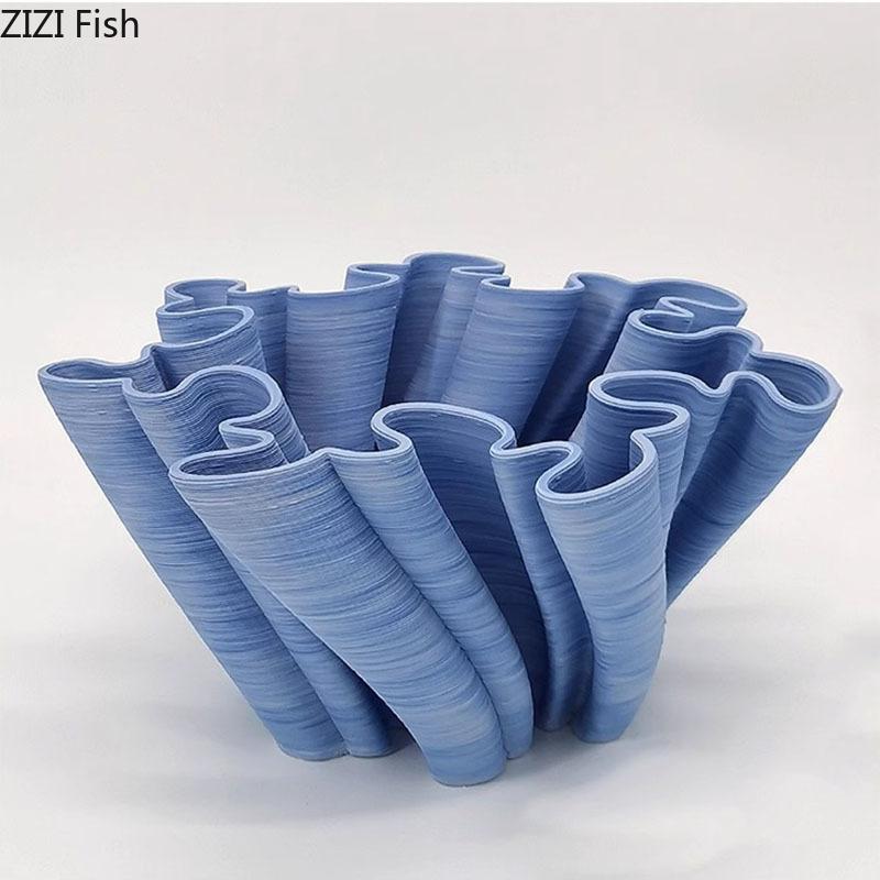 Creative Wrinkled Ceramic Vase Desk Decoration Flower Bud Shape Vases Modern Artificial Flowers Decorative Floral Arrangement