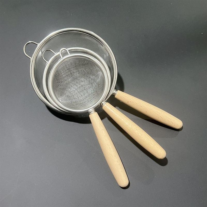 304 stainless steel filter Spoon with Comfortable insulated Wooden Handle Flour Filter Spoon Household Kitchen Fried Food Filter