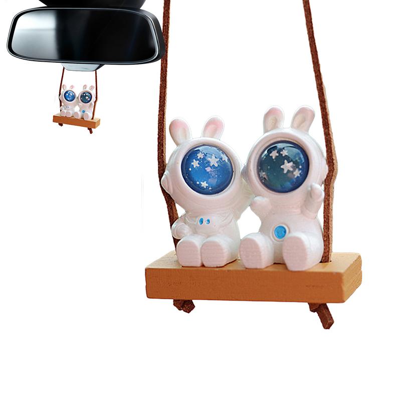 Swing Astronaut Car Pendant Space Rabbit Shape Decorative Tree Pendant With Lanyard Funny Colorful Car Ornaments For Walls Doors
