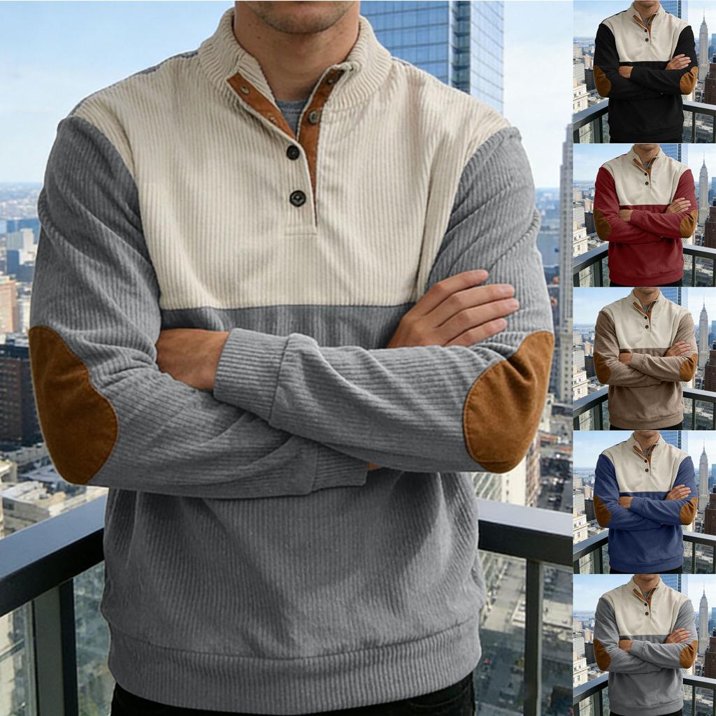 New Men's Corduroy Patchwork Contrast Collar Oversized Long-Sleeved Knitted Sweatshirt