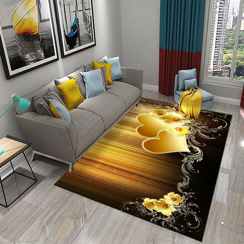 3D Black Golden Luxury Carpet for Living Room Bedroom Bedside Rugs European Style Hallway Decor Carpets Bathroom Non-slip Rugs