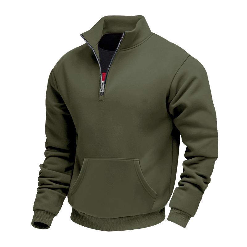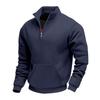 Autumn/Winter Fleece-Lined Heavyweight Men's Oversized Vintage-Style Casual Stand-Up Collar Half-Zip Commuter Hoodie with Pockets