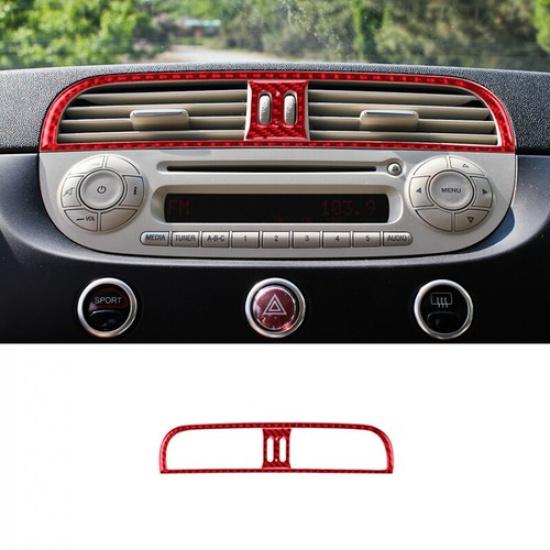 2pcs Red Carbon Fiber Car Center AC Vent Panel Sticker For Fiat 500 12 13 14 15