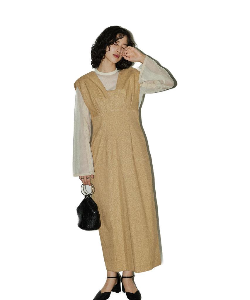 The V-neck at the chest has a removable bib that can be buttoned, allowing you to adjust it to suit the occasion.