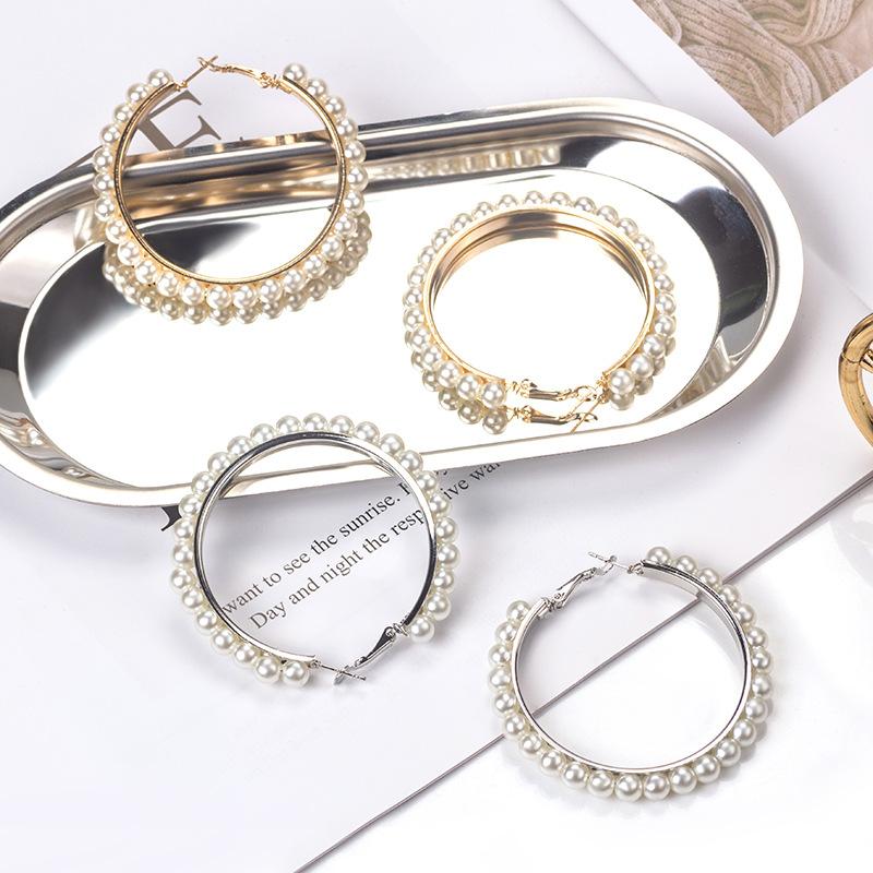 Gold And Silver Geometric Woven Pearl Rice Bead Earrings, Fashion Trend Earrings Retro
