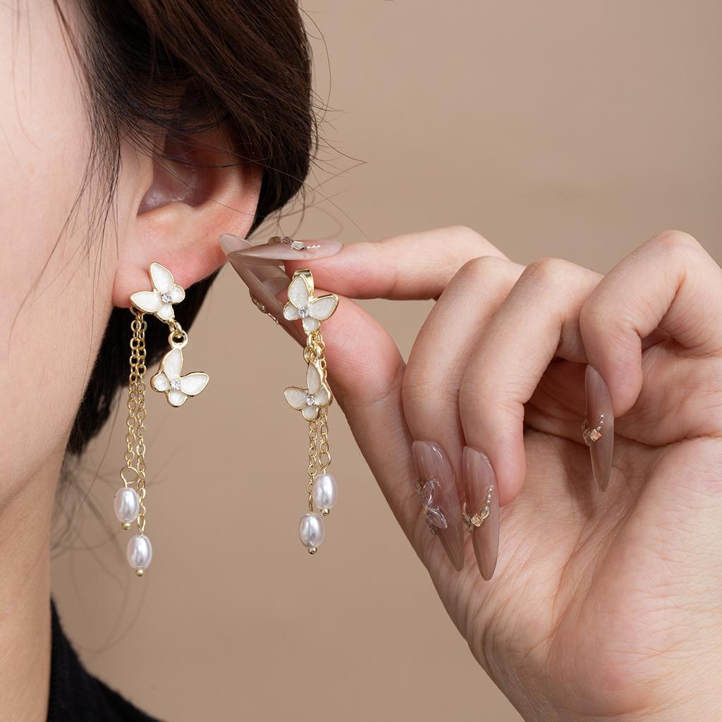 French Niche Premium Pearl Fringed Butterfly Earrings Women'S Spring And Summer Small Fresh Fashion Stud Earrings