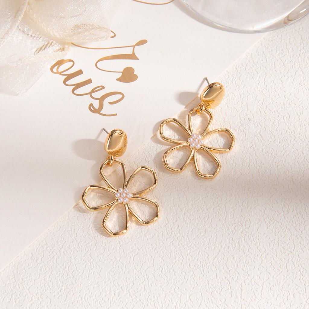 Retro Hollow Big Flower Pearl Stud Earrings, Light Luxury Design Sense, Simple Personality Temperament Earrings Women