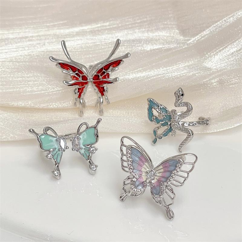New Butterfly Language Niche Dripping Oil High-End Butterfly Opening Adjustable Ring Light Luxury Enamel Personalized Jewelry Women'S Tide