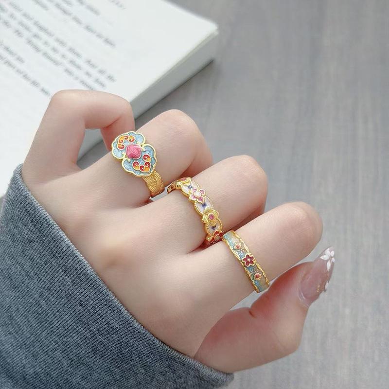 Styl Narodowy Emaliowany Kwiat Ruyi Otwierany Regulowany Pierścionek Damska Moda Lekki Luksusowy Styl Dworski Pierścionek