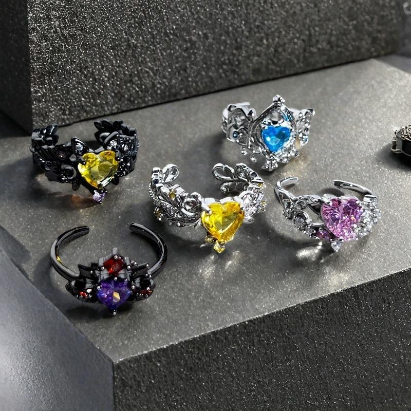 Fashion Color Love Zir*****Pen Ring Slightly Inlaid Heart-Shaped Exquisite High-End Personalized Accessories Women