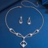 Fashion Light Luxury Super Shiny Zircon Square Necklace Earrings Wedding Set Bridal Dress Accessories