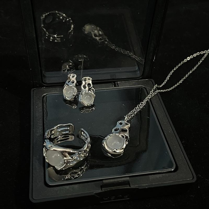 Zestaw Opalowy o Niszowym Designie, Otwierany Pierścionek w Stylu Cold Wind, Spersonalizowany Prosty Naszyjnik, Wysokiej Klasy Kolczyki Sztyfty Dla Kobiet