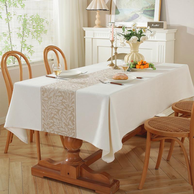 Polyester Jacquard White Coffee Retro Rhombus Geometric Rectangular Dining Table Cloth Tablecloth Coffee Table Cover Towel