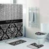 Luksusowa Czarno-Złota Zasłona Prysznicowa z Wzorem Damask Zestaw Łazienkowy Złoty Wspaniały Wzór Mata Łazienkowa Dekoracja Toalety