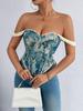 Tao Lina Vintage Print Corset Podkoszulek z Rybim Szkieletem: Damski top bandeau bez rękawów z pięknym tyłem na lato.