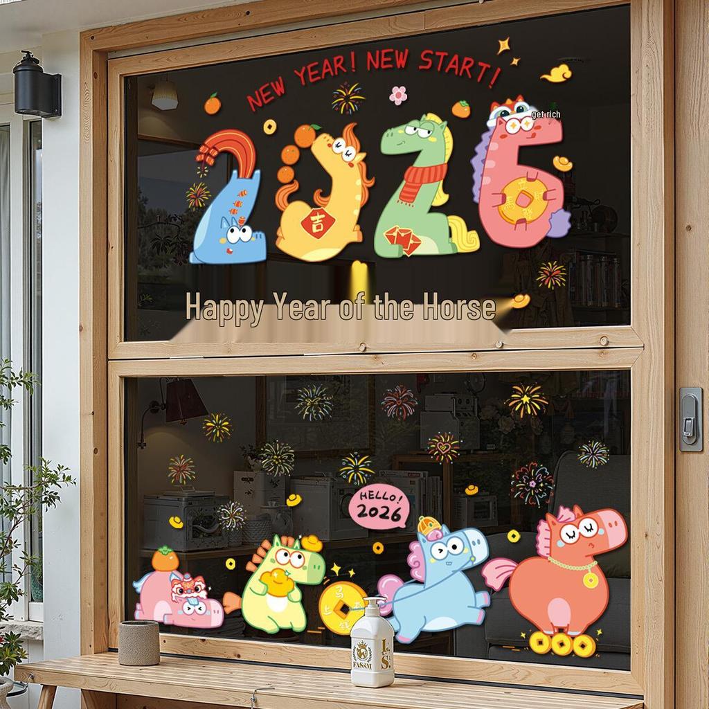 Naklejka ścienna Rysunek linii Roku Konia 2026 – Noworoczna naklejka na okno do szklanych drzwi centrum handlowego