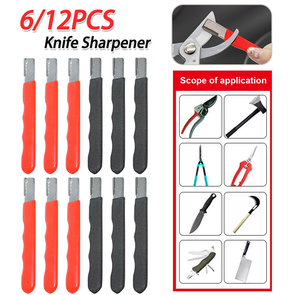 6/12PCS Pocket Sharpening Stone with Cover Pruner Sharpener Stainless Steel Garden Shears Sharpening Tool for Kitchen Garden