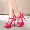 High Heels 15cm Women's Shoes with A Buckle Strap Sandals Women's Slim Heels Waterproof Platform High Heels Rhinestone Bow Shoes