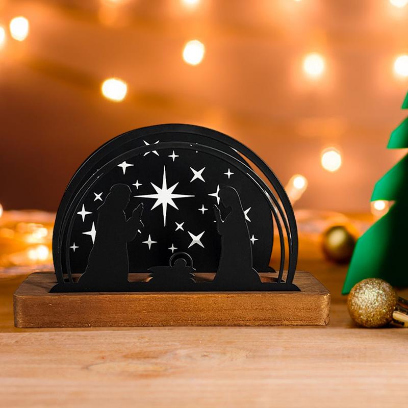 Christmas Candle Holder Metal Nativity Scene Candlesticks Decorative Candle Stand Holiday Candle Holder With Wood Base For