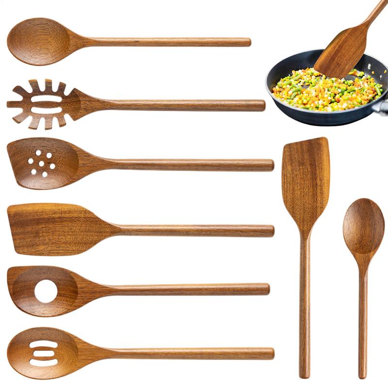 Wooden Utensil Set Nonstick Comfort Grip Wooden Spatula Set Safe Natural Healthy Kitchenware For Mixing Serving Home Family