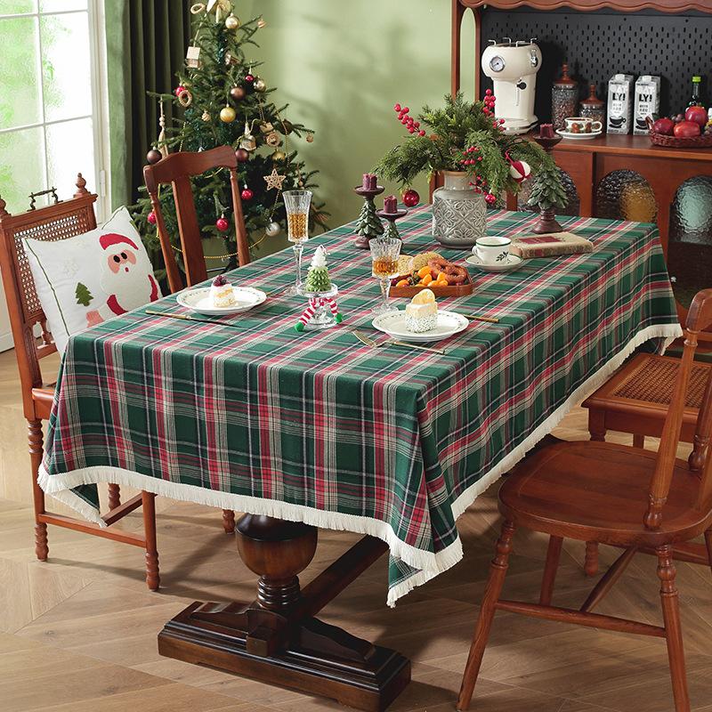 Christmas Checkered Tablecloth Buffalo Plaid Cotton Flannel Tablecloths, Xmas Winter Washable Table Cover For Party Dining Decor