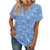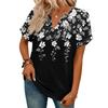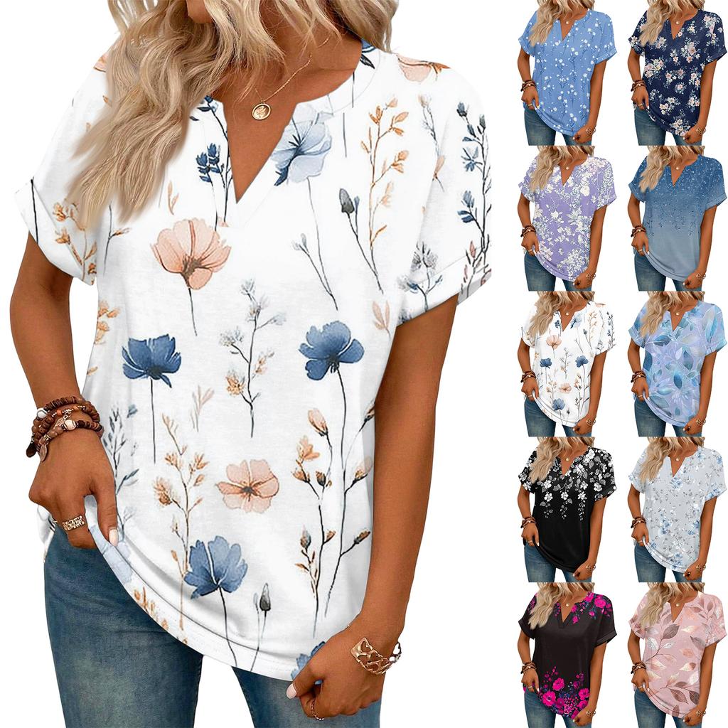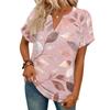 Stylowy damski casualowy T-shirt z krótkim rękawem z dekoltem w serek i retro kwiatowym nadrukiem