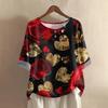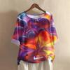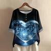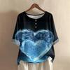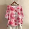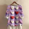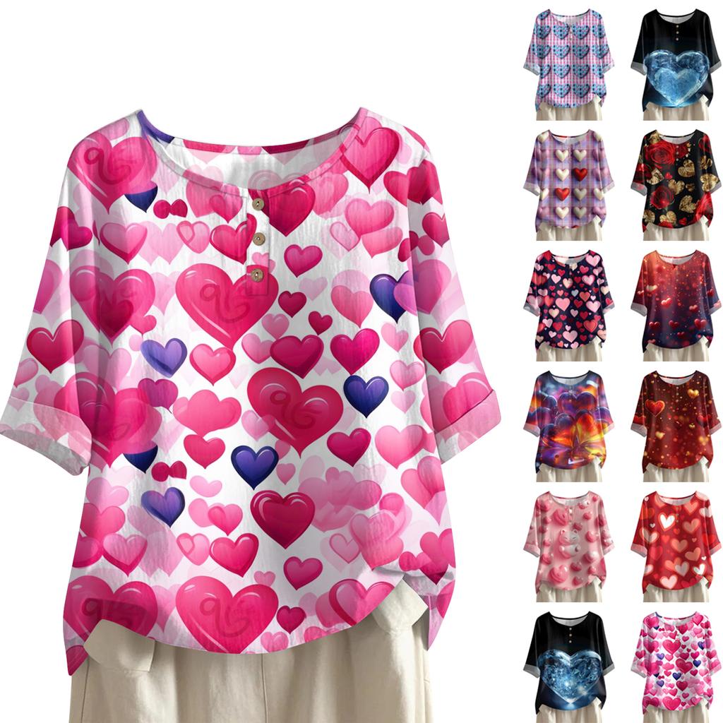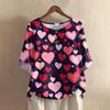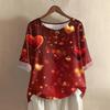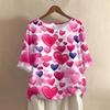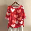 Damska koszulka z nadrukiem na Walentynki, casualowa, z krótkim rękawem, okrągłym dekoltem, z bawełny i lnu