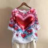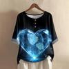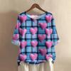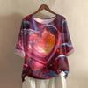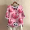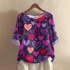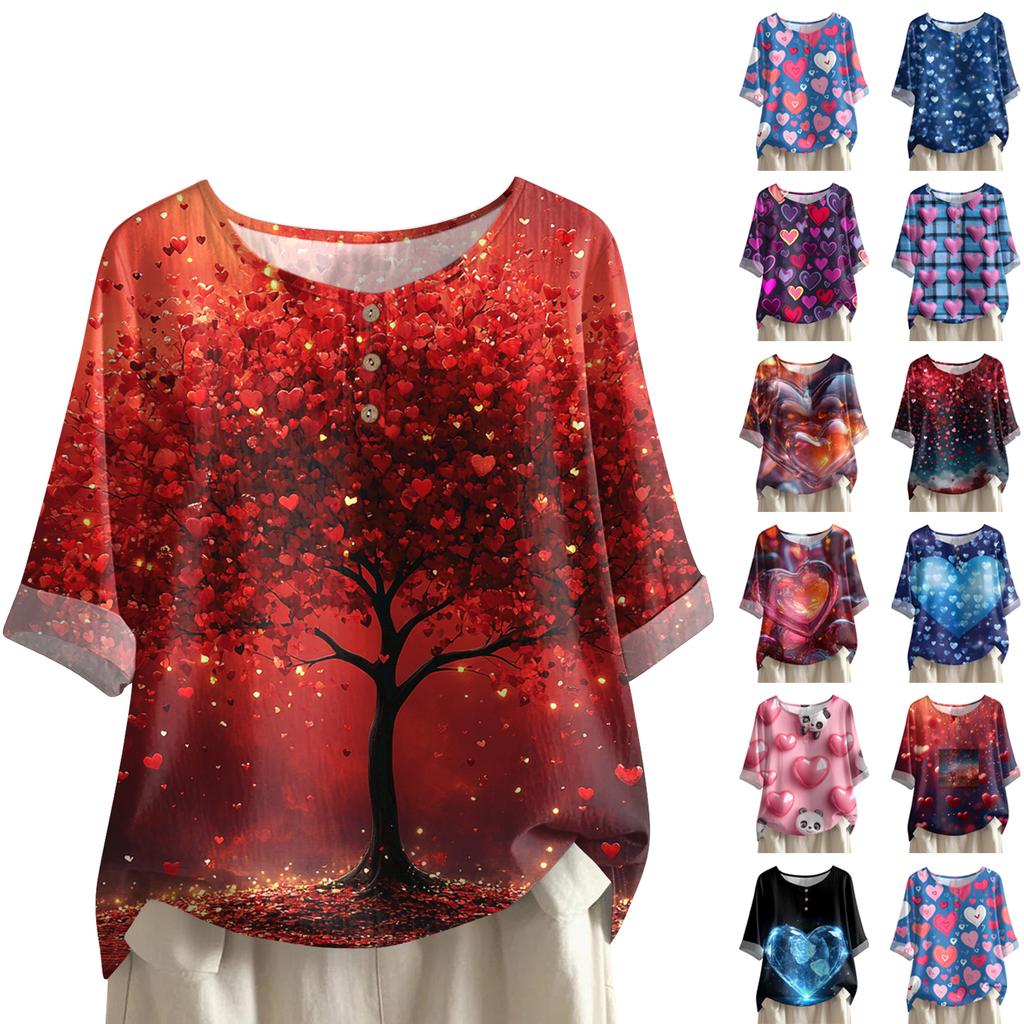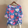 Damska koszulka z nadrukiem na Walentynki, casualowa, z krótkim rękawem, okrągłym dekoltem, z bawełny i lnu