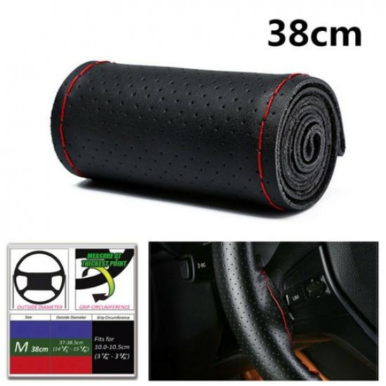 38cm Car Steering Wheel Cover Four Seasons First Layer Cowhide Leather Hand-Sewn