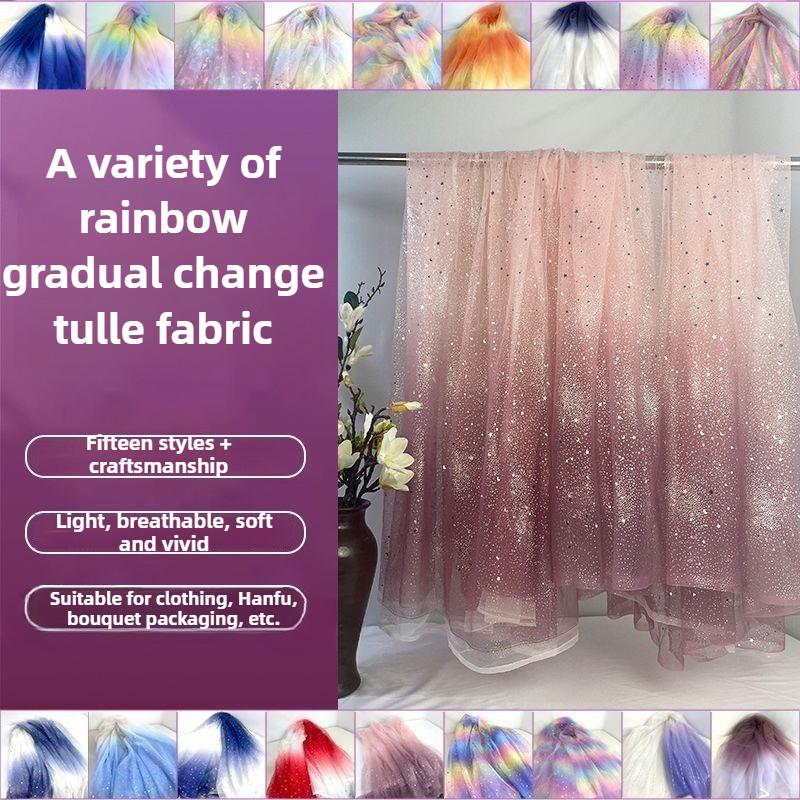 Gradient Rainbow Tulle Fabric Star Sequin By The Meter for Dress Hanfu Wedding Package DIY Sewing Cloth Soft Thin Draping Blue