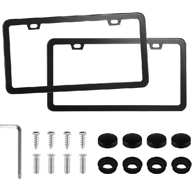 LivTee Black License Plate Frames, 2 Holes Stainless Steel License Plate Covers, 2PCS Car License Plate Holder, Automotive Exterior Accessories, Slim