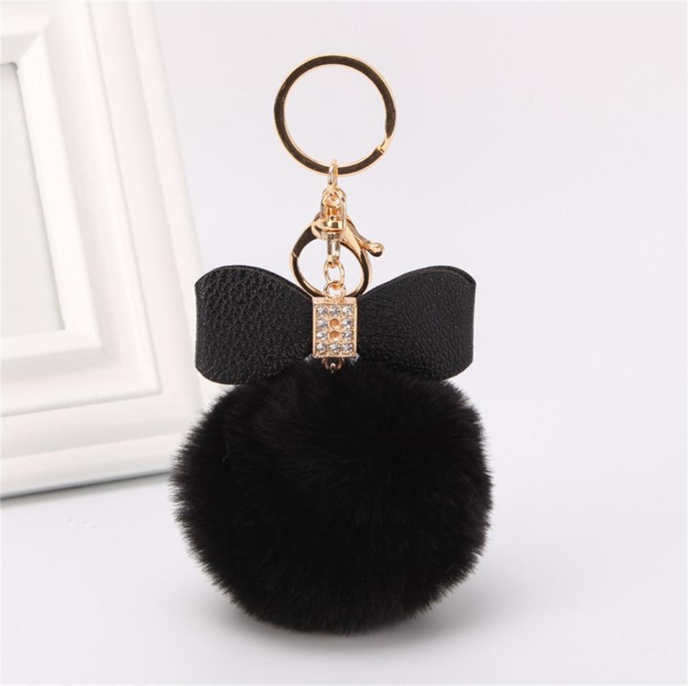 Modny breloczek z pomponem Kreatywny brelok do kluczy z PU w kształcie kokardy z błyszczącymi cyrkoniami Ozdoby do damskiej torebki Akcesoria do uchwytu na klucze samochodowe