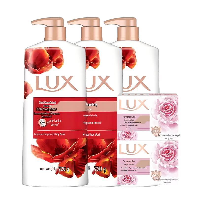 Indulge in the luxurious care of the LUX Dreamy Orchid Scent Shower Gel and Soap Bundle. This exquisite set features three 720g bottles of fragrant shower gel, formulated to cleanse, moisturize, and soften your skin with a captivating orchid aroma. Complementing the shower gel are two 100g bars of detoxifying and antibacterial soap, designed to leave your skin feeling tender and refreshed for longer. Ideal for various skin types, this bundle offers a complete body care experience.