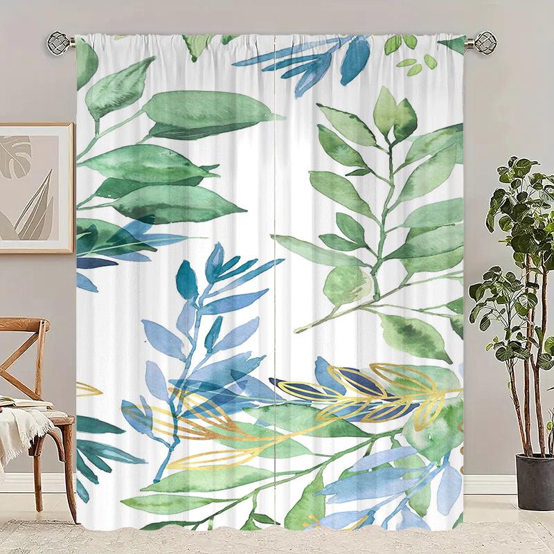 2Pcs- Green leaf - Printed curtain -100% polyester material for bedroom curtains and living room decoration.